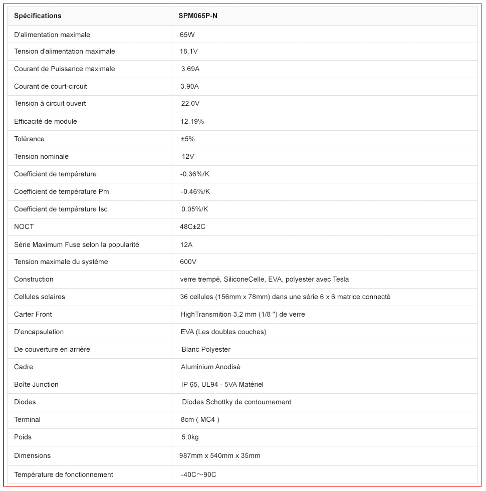 Cadre rigide en aluminium anodisé et verre à faible fer trempé.