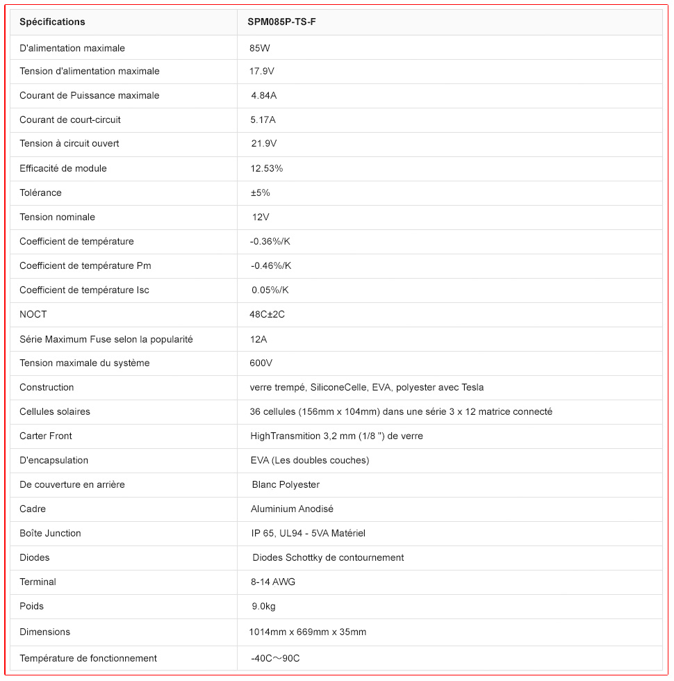 Cadre rigide en aluminium anodisé et verre à faible fer tempéré.